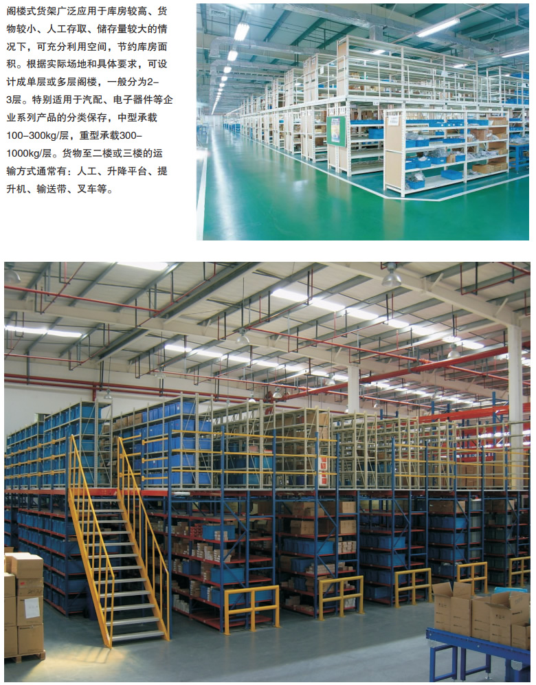 4、可根據(jù)實(shí)際場地需要,靈活設(shè)計成二層或多層擱樓。適用于存放多品種,少批量貨物,充分利用空間。