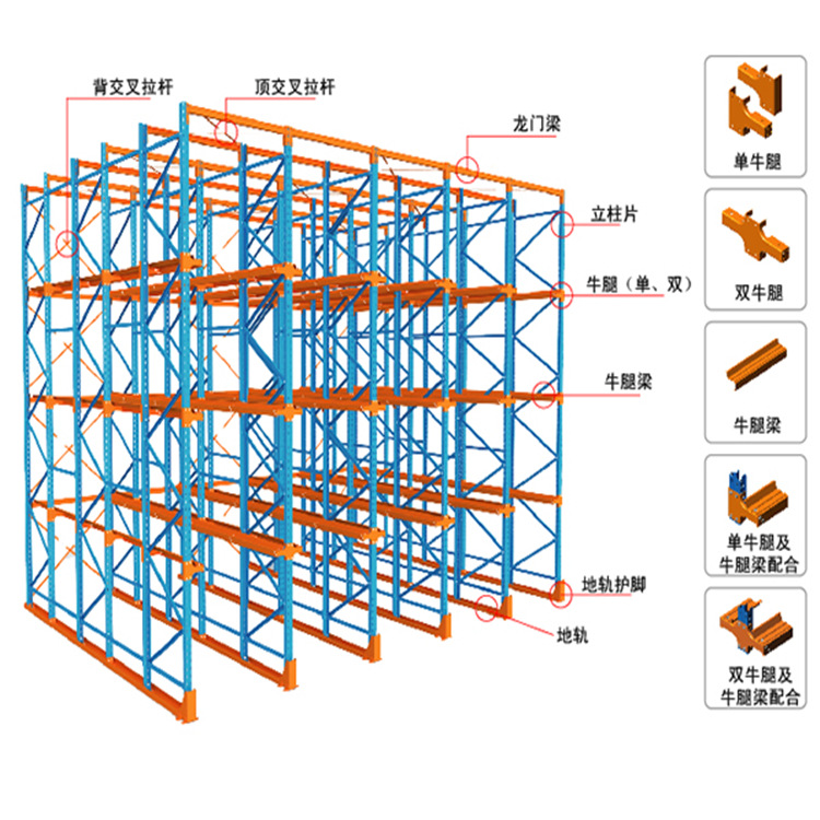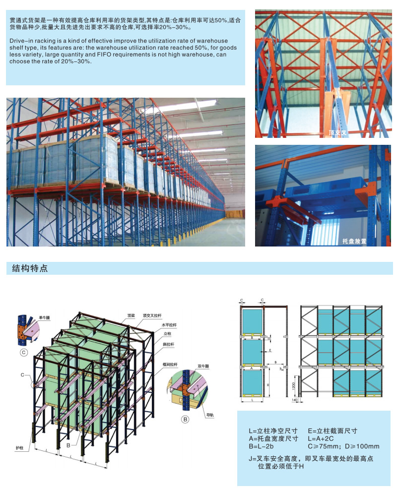 1、貨物存儲通道亦為叉車儲運通道,是存儲密度較高的一種形式貨架。