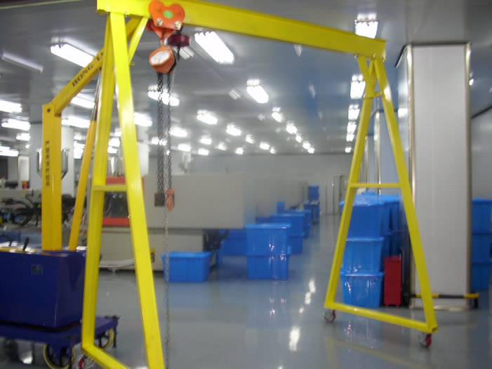 龍門架(移動起吊小龍門架)是根據中、小工廠(公司)日常生產需要搬運設備、倉庫進出貨,起吊維修重型設備及材料運輸的需要,開發出來的新型小型起重龍門架。形象如盤龍柱因此得名。適用于制造模具、汽修工廠、礦山、土建施工工地及需要起重場合。常見的在建筑施工中兼作材料運輸和施工人員的上下使用,實現起重機械化。可減少人力,降低生產運營成本,提高工作效率。 該移動龍門架較大的優點是可全方位移動性,可快速拆卸安裝,占地面積小,用微型汽車就可轉移到另一個場地安裝使用。寬度、高度可分級調節,鋼架構設計合理,能承受從100~5000KG重量。尤其適用于車間設備的安裝、搬運、調試。 汽車上貨物的裝卸,汽修車間吊裝發動機大件等。起重小龍門架主要有二種規格:一是在地面上全方位移動的龍門架,帶剎車承重輪可在地面上移動,適合在地面上起吊物品;二是用鋼軌固定安裝在樓板面或梁上,通過電動或人力葫蘆,實現起重機械化。可減少人力,降低生產運營成本,提高工作效率。 |